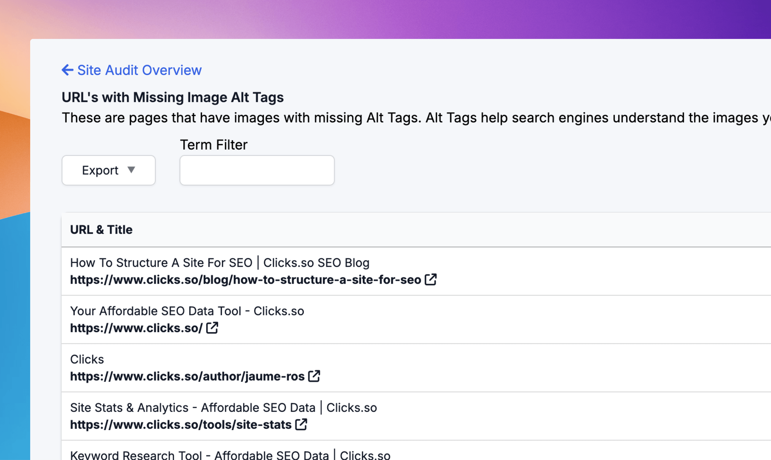 With detailed insights into your site's performance and clear guidance on resolving issues, Clicks.so's Site Audit Tool is your key to unlocking higher search engine rankings, improving user experience, and increasing your website's traffic.
