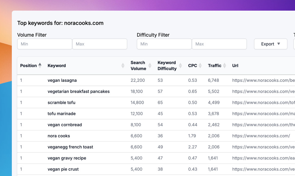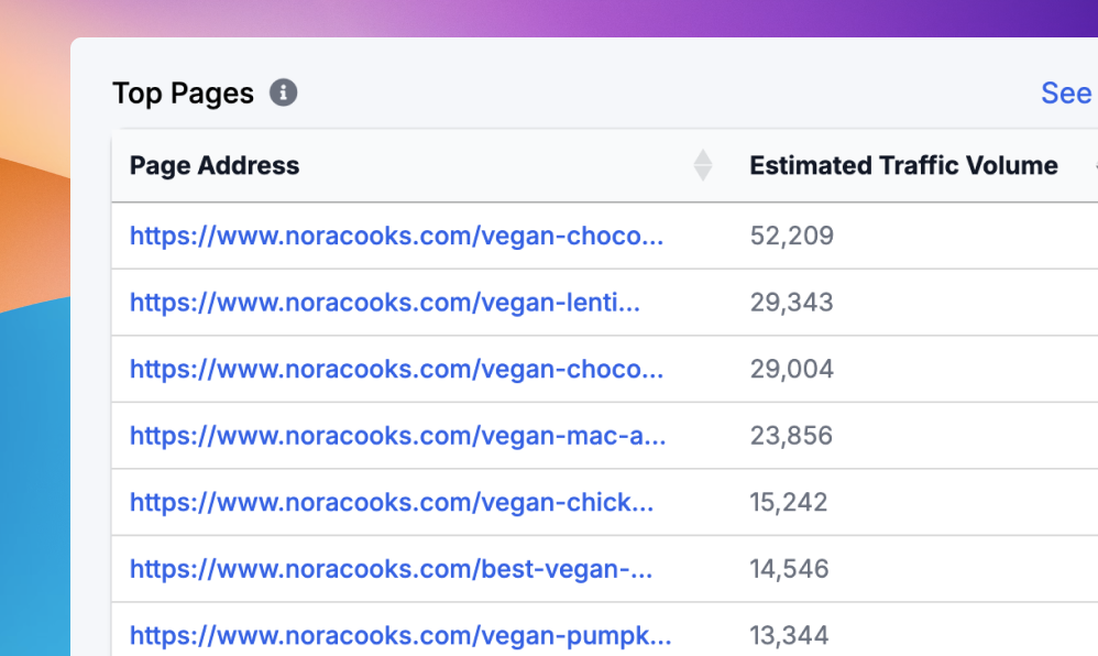 Discover which pages are your traffic powerhouses with Clicks.so. Our Top Pages analysis shows you the estimated traffic volume for each page, allowing you to identify your most popular content and understand what resonates with your audience. Use these insights to replicate success across your site.